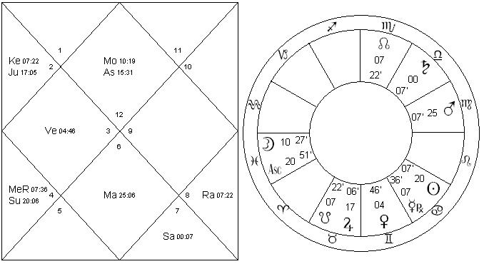 The lords of these houses are Venus, Mars and Saturn, respectively, and all are dignified. Venus has dig bala in the fourth house. Mars is in its own nakshatra in the seventh. Saturn is exalted in the eighth.