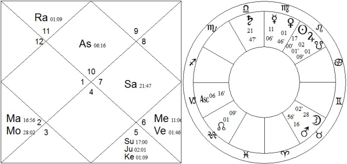 After examining the salient events in his life in light of dasas, bhuktis and transits, Iâve tentatively settled on a time of 15h54 (1 Sept 1896, Calcutta), which produces an ascendant of 06CP16. Although we can rarely make a chart account for an entire life, following are my arguments for a Capricorn ascendant.
